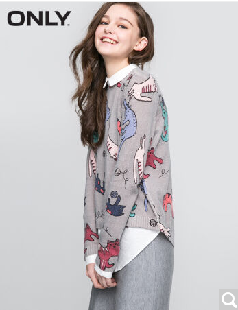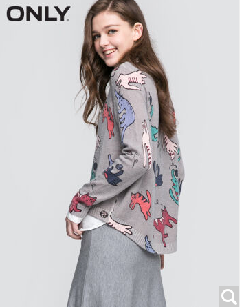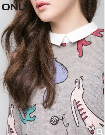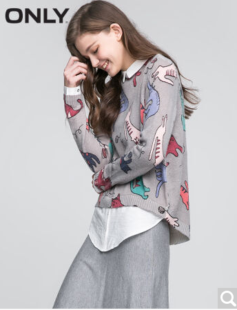 • 商品名称:ONLY2017早春新品宽松猫咪图案假两件针织衫女L|117124507 G43花灰 170/88A/L